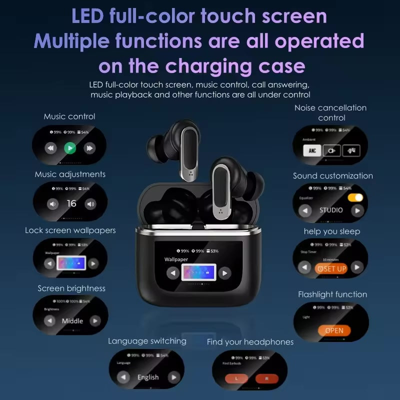 - Pantalla táctil (pausa, reproducción, subir y bajar volumen, canción anterior y siguiente, tomar fotos, reloj, linterna, ecualizador, idioma, brillo