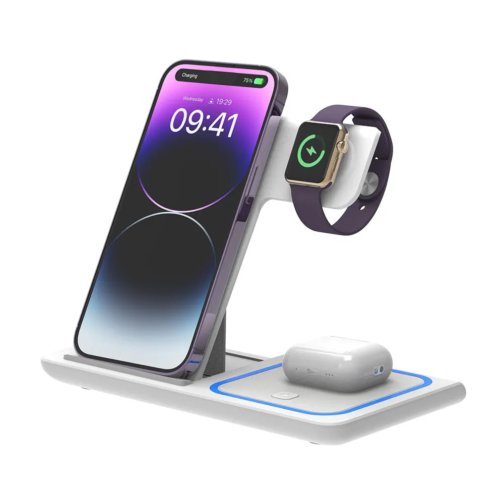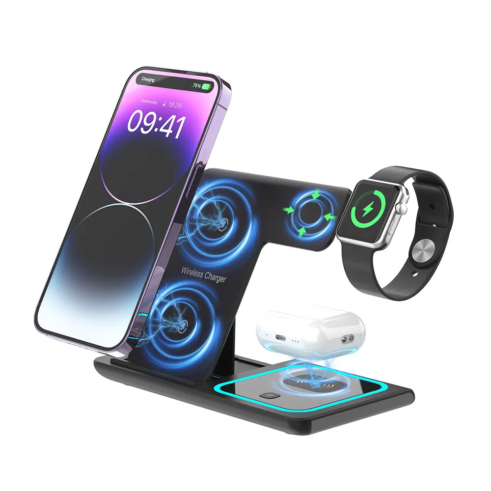 - Almohadilla de carga inalámbrica plegable y portátil: la estación de carga múltiple es plegable, ligera y portátil, y se puede poner en una bolsa o maleta.