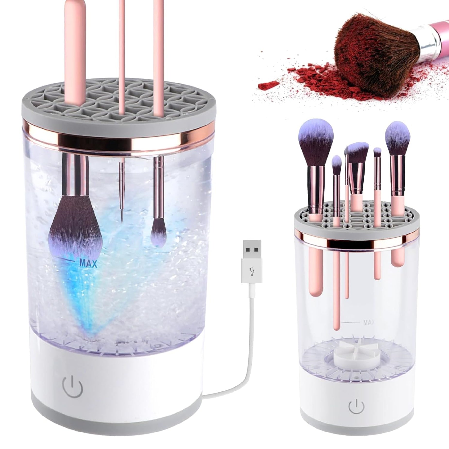 Te presento el limpiador eléctrico de brochas de maquillaje SÚPER PREMIUM que te ayudará a prevenir enfermedades como el acné o alergias en tu piel 🌟