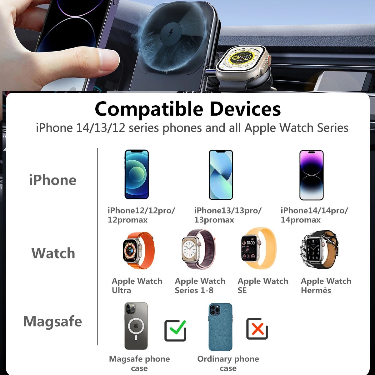Mantén tu celular estable cuidando la batería. Este soporte ayuda a la refrigeración del celular con su potente imán. Además, puedes cargar tu celular y tu smartwatch o Apple watch a la vez.