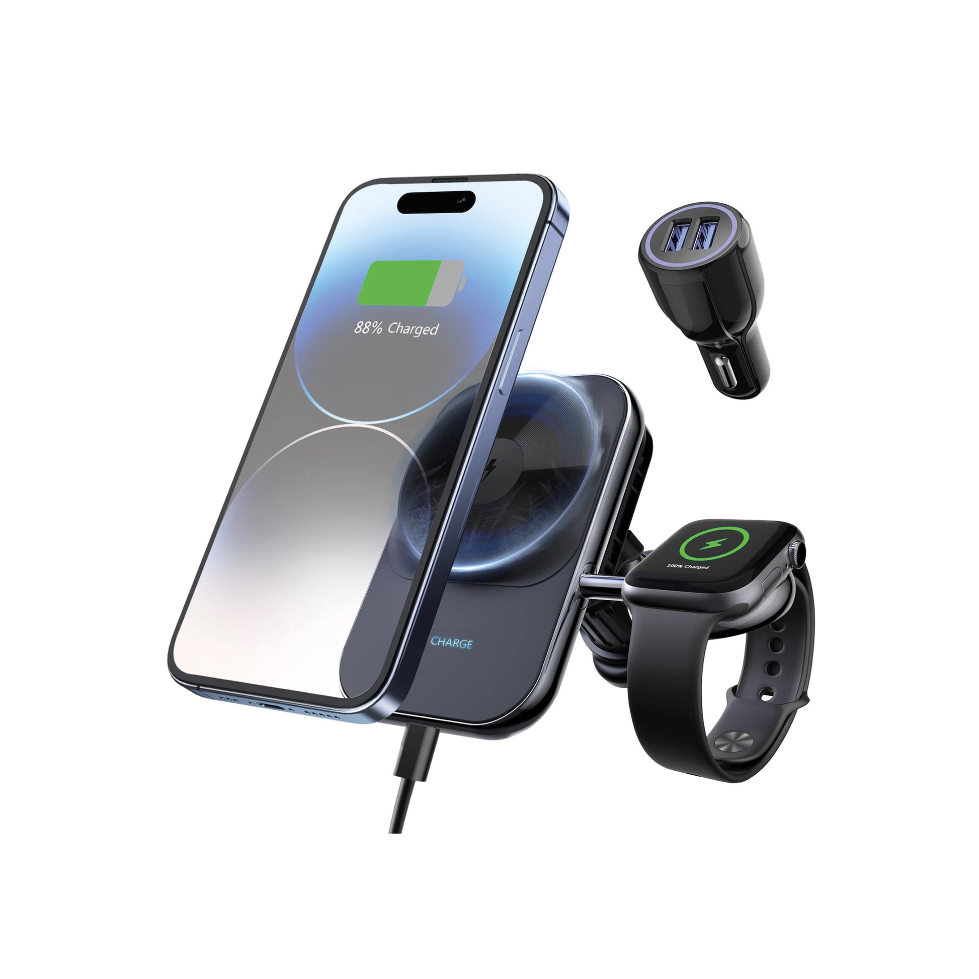 - Soporte 2 en 1 (carga Iphones y Smartwatch o Apple Watcha a la vez)
